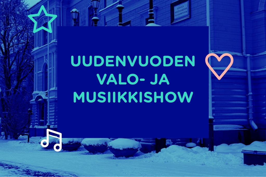 Uudenvuoden valo- ja musiikkishow Vaasan kaupungintalon edustalla 31.12. klo 18–21.30!