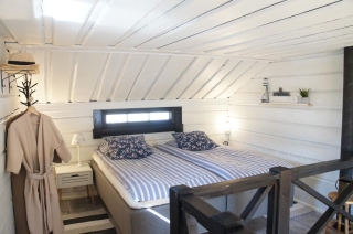 SEAVIEW STUDIO is an apartment with sea view, set in a former malt sauna that was given a new life in 2021. The apartment is located by our private sandy beach and accommodates two guests. The apartment is approximately 30 m² in size and features a loft, a private kitchen, and a bathroom.