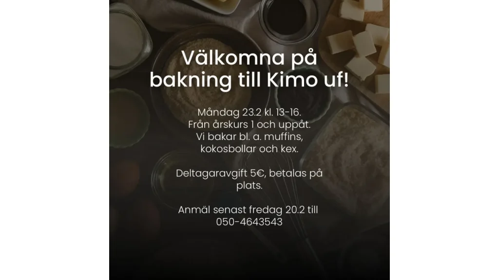 Kom med och baka vid Kimo uf Måndag 23.2 kl.13-16. För åk 1 uppåt.