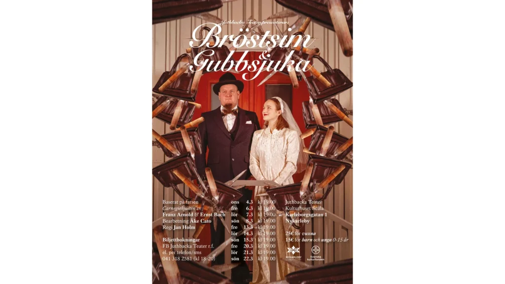 Farsen Bröstsim & Gubbsjuka kretsar kring lanthandlare Modin och hans stundande bröllop! Under planeringens gång dyker det upp allehanda besökare och gäster, som både hjälper och stjälper. Välkomna till kulturhuset Scala så får ni veta om lanthandlaren blir gift eller inte!
