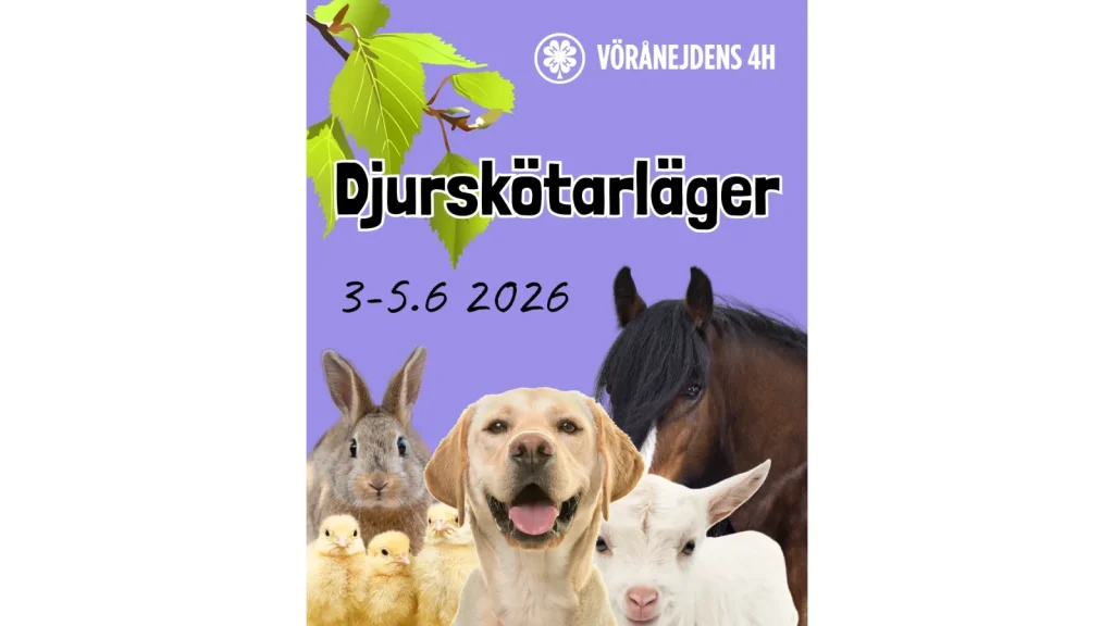 Dagsläger 3 dagar (3-5.6 2026) Vi lär oss hur man sköter om djuren som bor på 4Hgården vid Rasmusbacken. Vi tar reda på hur man kör med häst och kärra, hur man lär en hund nya trix samt vilken kanin som hoppar det högsta hindret.