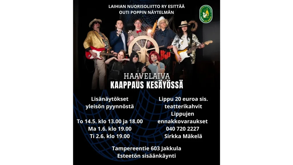 Haavelaiva – kaappaus kesäyössä -näytelmä Laihian Nuorisoliiton lavalla.