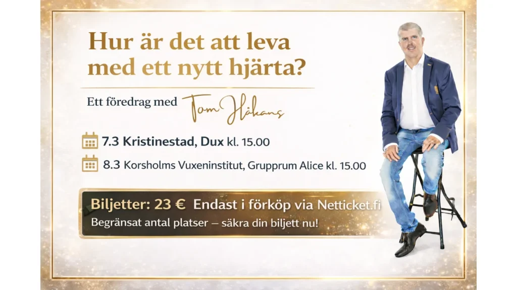 Tom Håkans är ett levande underverk. Som tvååring genomgick han en hjärttransplantation – och 34 år senare slår det nya hjärtat fortfarande. I denna gripande och unika föreläsning delar Tom med sig av sin livsresa: om erfarenheterna av att leva med ett transplanterat hjärta, sin vardag, sina utmaningar och sitt sätt att se på framtiden.