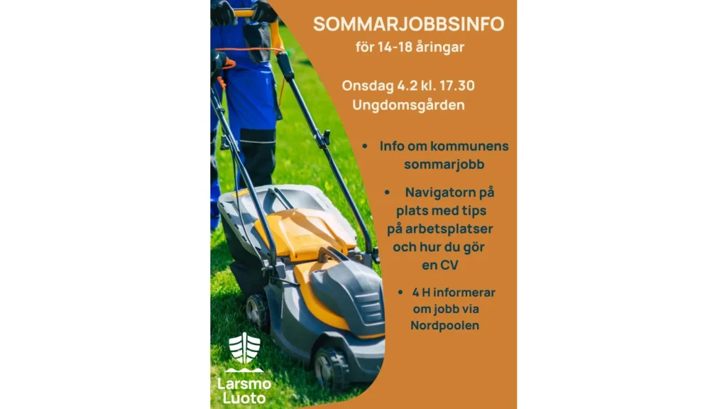 Onsdagen den 4 februari kl. 17.30 ordnar vi ett infotillfälle gällande sommarjobb för ungdomar som är 14-18 år i Ungdomsgården i Holm.