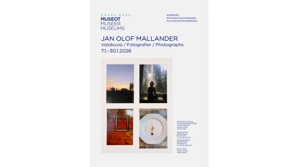 Taiteilija, kriitikko, galleristi ja keräilijä Jan Olof Mallander (s. 1944) on elävä legenda Suomen taidemaailmassa. Hän on ollut keskeinen hahmo kansainvälisen avantgarden, Fluxuksen ja undergroundin tuomisessa Suomeen. Taiteilijalla on myös pitkä ura kriitikkona ja kirjoittajana. Uransa alkuvaiheessa Mallander oli ennen kaikkea valokuvataiteilija. Vaikka hän on kuuden vuosikymmenen uransa aikana työskennellyt laajasti eri tekniikoiden ja taidemuotojen parissa, valokuvauksella on yhä tärkeä sija hänen sydämessään. Kiertonäyttelyyn sisältyy noin 50 valokuvaa, jotka Mallander on ottanut uransa aikana. Valokuvat vangitsevat erilaisia hetkiä arjesta ja luonnosta. Näyttely on tuotettu yhteistyössä J. O. Mallanderin ja Vaasan museoiden kanssa.