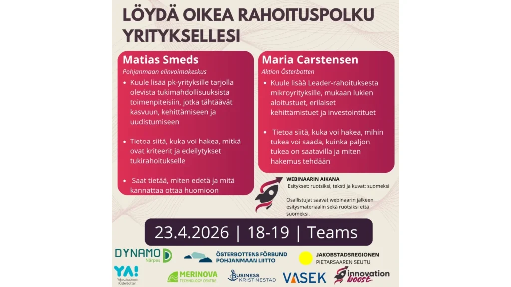 Osallistujat saavat webinaarin jälkeen esitysmateriaalin sekä ruotsiksi että suomeksi.