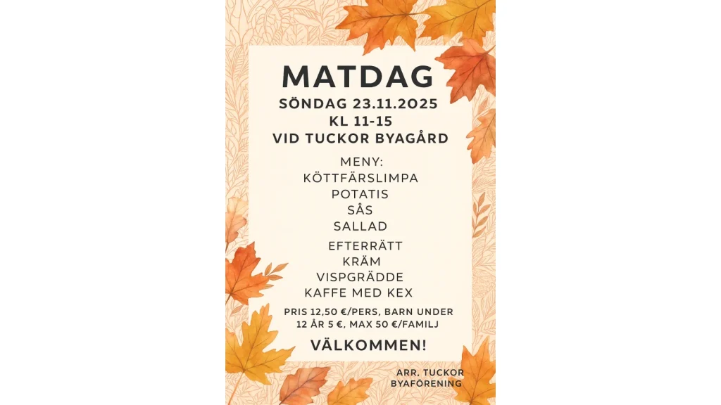 Välkommen på lunch till Tuckor byagård sö 23.11.2025 kl. 11-15.