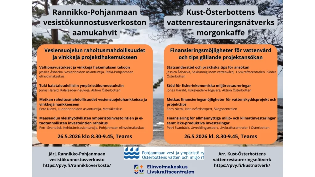 Tervetuloa osallistumaan Rannikko-Pohjanmaan vesistökunnostusverkoston aamukahviwebinaareihin keväällä 2026.
