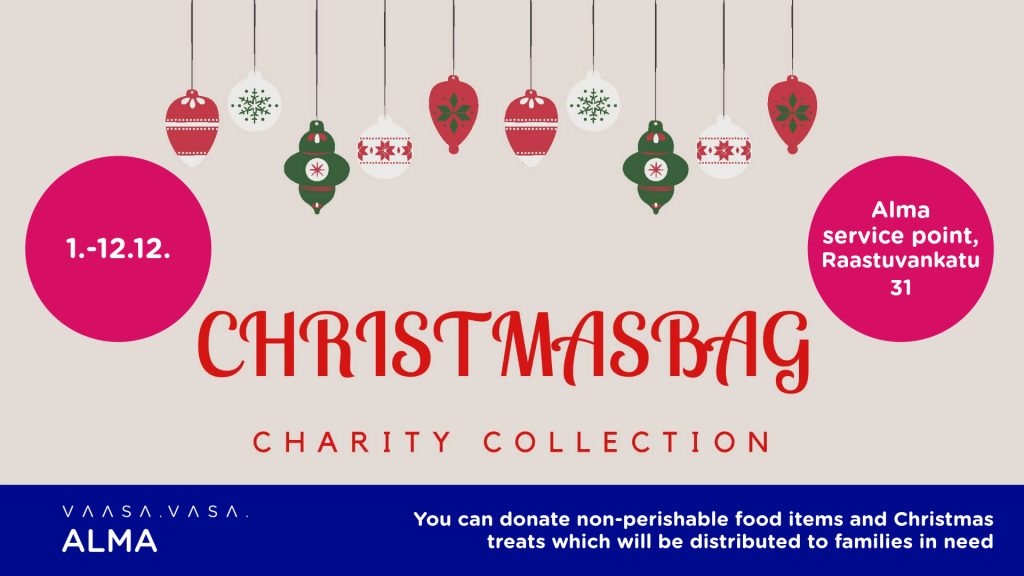 Alma is participating in the Christmas Bag charity collection organized by Vamia’s business students.
