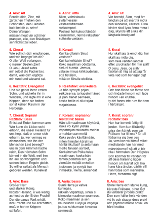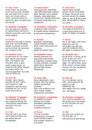 Nykyään jouluoratorio kuuluu itsestäänselvästi joulun musiikkitarjontaan ja hyvä niin, sillä Jouluoratorio on kuin joulu itse: pyhä ja maallinen yhtyvät siinä hedelmällisellä tavalla, ja jos pohjalla onkin evankeliumien ilosanoma Jeesuksen syntymästä, on päällä lukematon määrä eri kerroksia, joista jokaiselle on ammennettavaa.