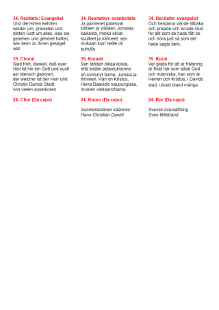 Jouluoratorion kolmen ensimmäisen kantaatin osalta Bach käytti päämateriaalina kahta vuonna 1733 valmistunutta maallista kantaattia, joista molemmat oli sävelletty Saksin hovin syntymäpäiviä varten. Libretisti oli oletettavasti Picander-kirjoittajanimeä käyttänyt Christian Friedrich Henrici. Hänen tehtäväkseen jäi asetella Bachin valitsemiin numeroihin uudet tekstit sekä kirjoittaa resitatiivitekstit evankeliumien pohjalta.