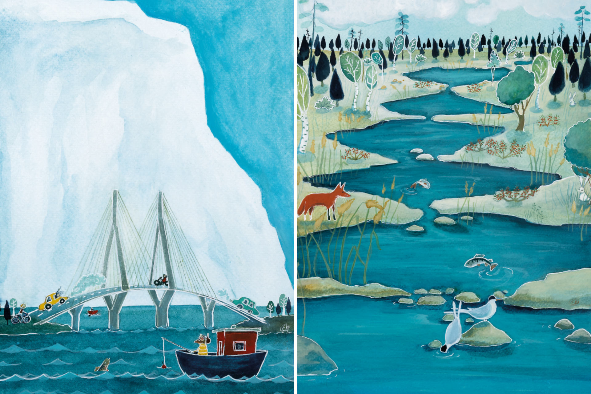 Maailmanperintöportin lasten taloa varten luotu ja digitoitu kuvamaailma on niin upea, että päätimme järjestää kiertävän kesänäyttelyn taiteilija Sanna Ekin alkuperäismaalauksista. Kesän 2023 aikana taulut kiertävät Vöyrin pääkirjastossa 16.-30.6. ja Korsnäsin kirjastossa 1.7.-30.7. Haluaisitko sinä pitää oman lasten maailmanperintönäyttelyn? Ota yhteyttä Merenkurkun asiakaspalveluun: +358 50 3466 200 tai info@kvarken.fi