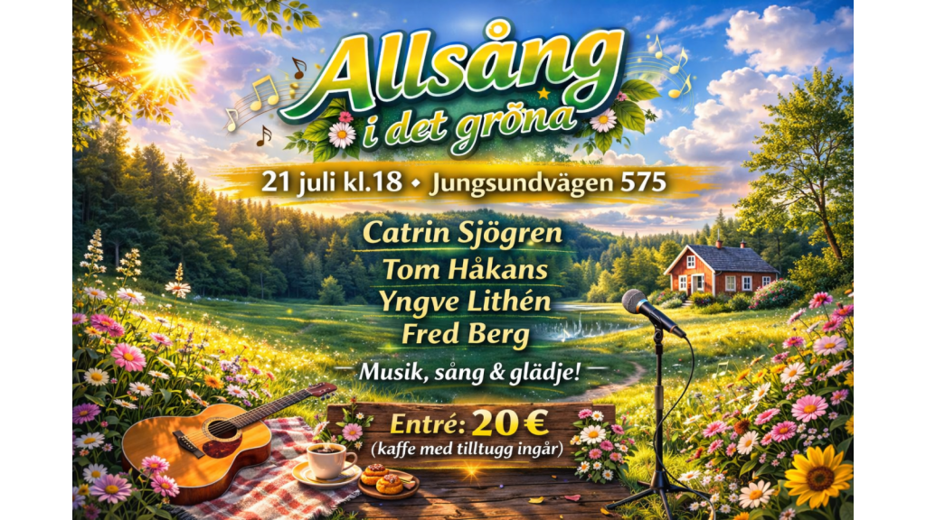 Vi sjunger de bästa visorna och allsångslåtarna från Norden i den vackra högsommarkvällen.