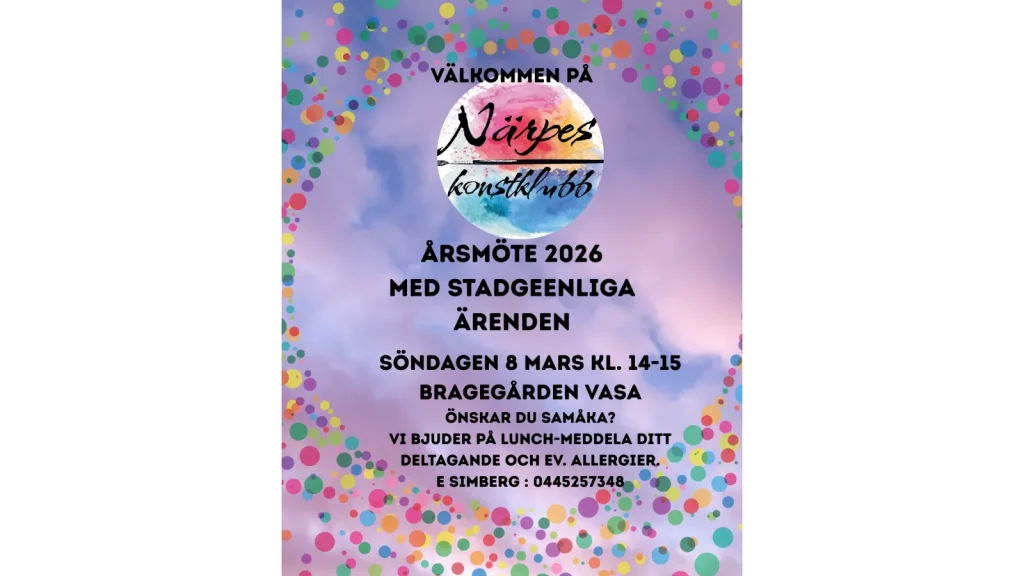 Välkommen att kicka igång klubbens nya verksamhetsår. Vi har många nya program som presenteras, årets Närpeskonstnär som utses och vi lyfter fram sommarens utställningstema.
