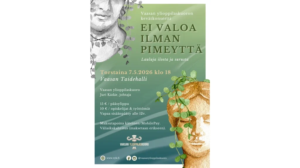 Lämpimästi tervetuloa nauttimaan kuoromusiikista Vaasan taidehalliin 7.5. klo 18!
