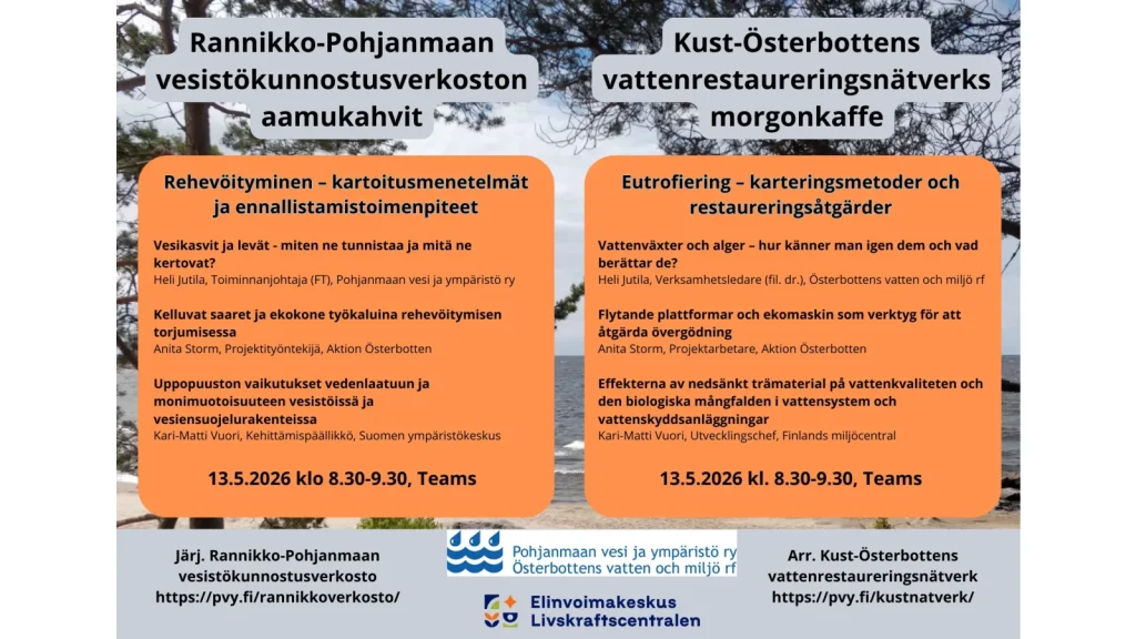Välkommen att delta i Kust-Österbottens vattenrestaureringsnätverks morgonkaffewebbinarier våren 2026.