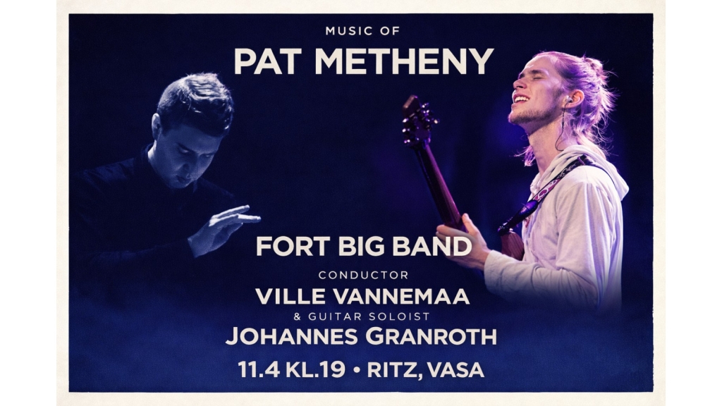 Johannes Granroth (1997), en av Finlands främsta unga gitarrister, hyllar musiken av den legendariske jazzgitarristen Pat Metheny tillsammans med Fort Big Band lördagen den 11 april på Ritz i Vasa. Kvällen är helt tillägnad Methenys musik – känd och älskad av jazzpublik världen över för sina starka melodier, rika harmonier och unika ljudvärldar.