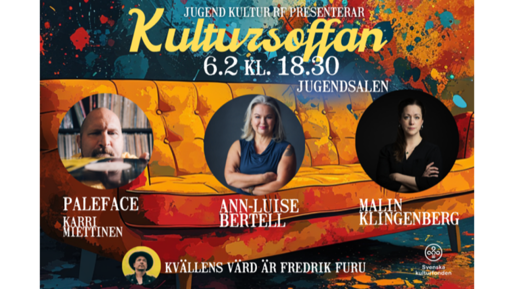 Välkommen till en inspirerande och underhållande kväll i kulturens tecken när talkshowenKultursoffan intar Jugendsalen i Jakobstad igen under Runebergsveckan fredag 6.2 kl. 18.30.