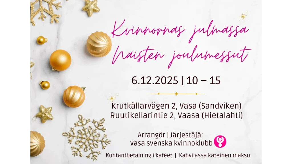 Välkommen på Kvinnornas julmässa vid Vamias Hansa-campus, Krutkällarvägen 2, Vasa (Sandviken).