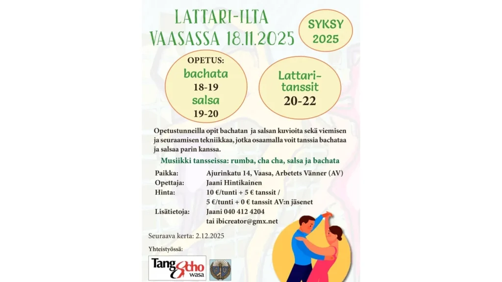 Lattari-ilta Vaasassa - tanssit ja tanssin opetusta