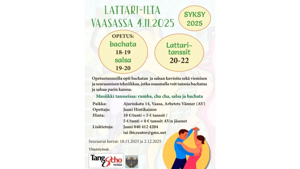 Lattari-ilta Vaasassa - tanssit ja tanssin opetusta
