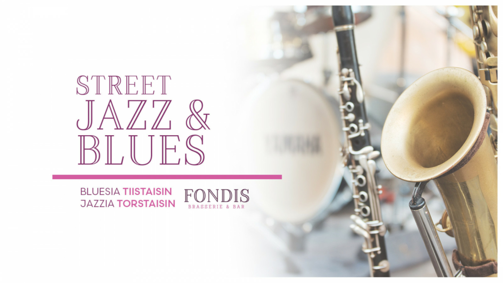 Street Jazz & Blues -ilmaiskeikat Vaasan kävelykadulla Fondiksen katetulla ja lämmitetyllä terassilla 11.6.–22.8.