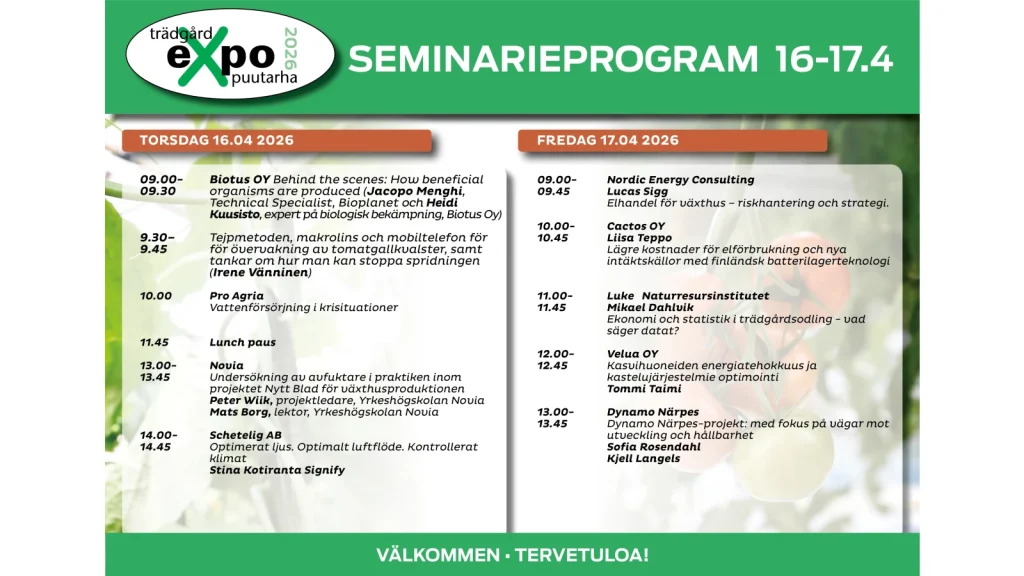 Trädgårds Expo 2026 seminarium 16 och 17 04 2026