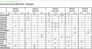 Här i studiebrickan kan du se när olika studieavsnitt i läroämnen erbjuds.