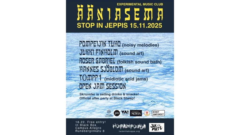 Kokeellinen musiikkiklubi ÄÄNIASEMA, jonka ovat luoneet Taidetila Hopan luovat sielut Jyväskylässä, saapuu Black Boxiin yhteistyössä Jakarten kanssa!
