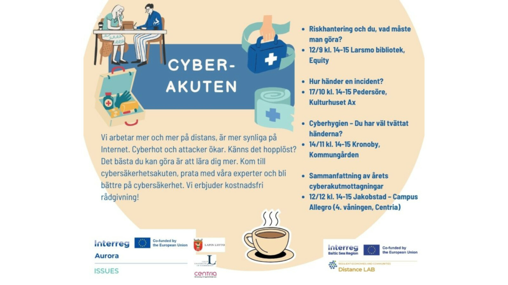 Du får första hjälp, kan ställa frågor och prata med våra experter från Yrkeshögskolan Centria (från Jakobstad) och från Luleå tekniska universitet. Du kan också delta online, evenemanget är också för distansarbetare!