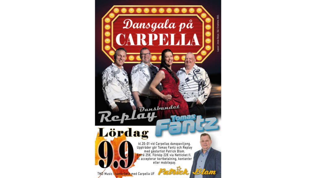 Välkommen på Dansgala till natursköna Carpella (paviljongen) Lördagen den 9.9 kl 20-01