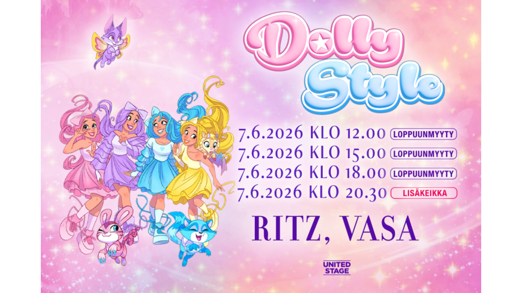 Dolly Style deltog i Melodifestivalen 2025 med låten ”YIHAA”. Bandet bildades 2014 och har blivit ett av 2010-talets mest unika svenska popband. Förra året spelade Dolly Style inte mindre än 138 konserter i Sverige, gjorde även en utsåld konsert i Helsingfors och nu kommer de till Vasa.