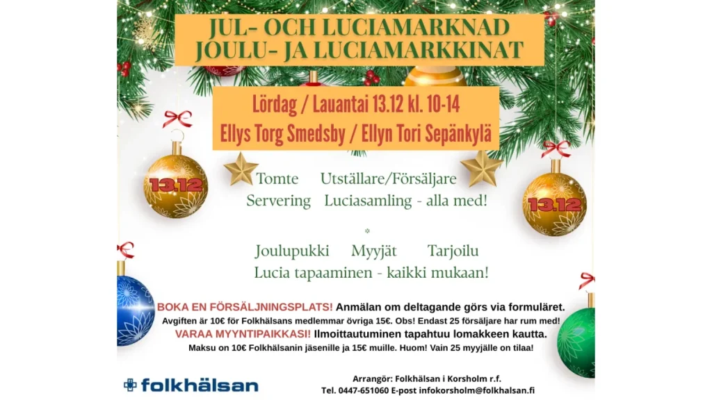 Kiinnostaako myydä jotain? Ota yhteyttä sähköpostitse osoitteeseen infokorsholm@folkhalsan.fi
