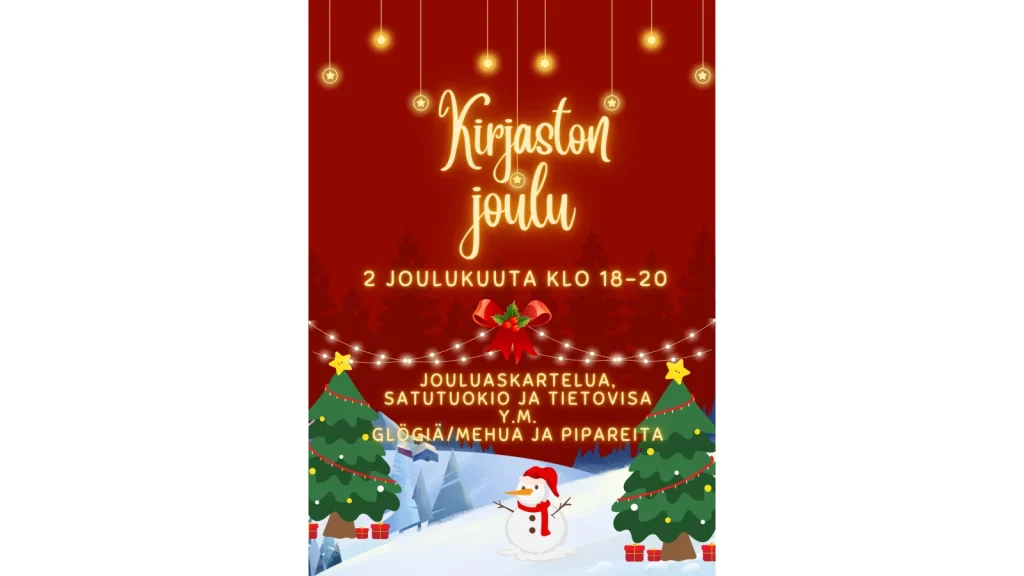 Jouluaskartelua, satutuokio, quiz, glögiä/mehua ja pipareita Pännäisten pääkirjastossa.