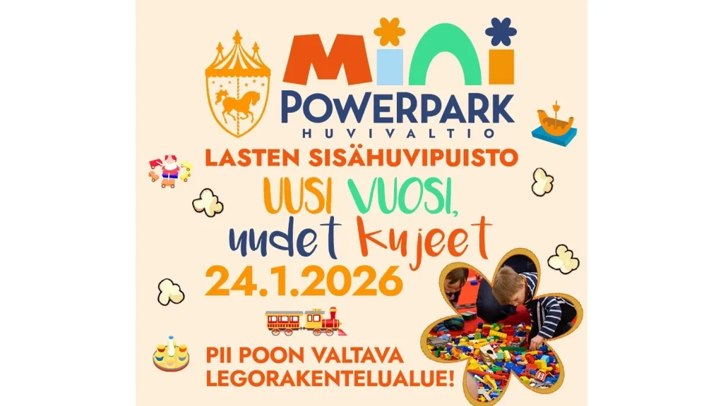 Mini PowerPark on nimensä mukaisesti PowerPark pienoiskoossa, jossa riittää riemua huvilaitteiden, kartingin ja hauskan yhteisen tekemisen parissa. Tämä lasten sisähuvipuisto on täydellinen paikka pienille seikkailijoille, jotka kaipaavat huvipuiston hauskuutta ja vauhtia myös pakkasten paukkuessa! Mini PowerPark on avoinna klo 10-16. Liput tapahtumaan verkkokaupasta tai ovelta tapahtumasta.
