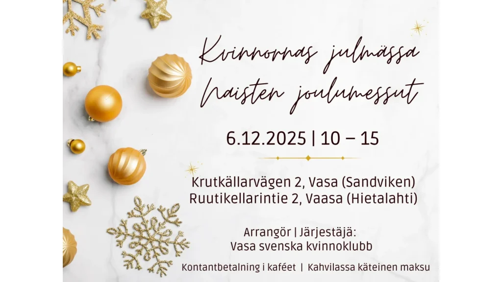 Tervetuloa Naisten joulumessuille Vamian Hansa-kampukselle, Ruutikellarintie 2, Vaasa (Hietalahti).