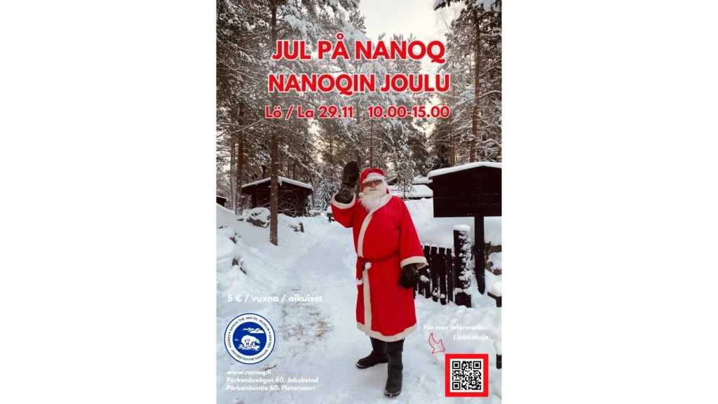 Nanoqin joulu järjestyy jälleen! Tänä vuonna otamme pienen pääsymaksun aikuisilta, 5€/henkilö. Lapsille on vapaa pääsy. Yhdistys kamppailee taloutensa kanssa ja tarvitsemme tukeanne.