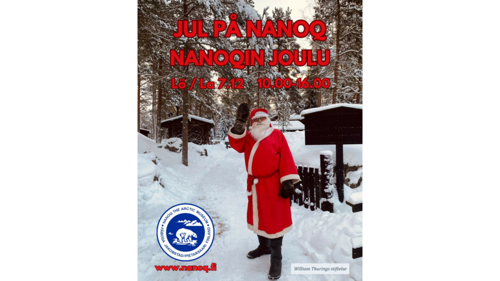 Tule nauttimaan joulutunnelmasta Nanoqissa Pietarsaaressa lauantaina 7. joulukuuta! Museo on avoinna klo 10–16, ja sisäänpääsy on ilmainen. Alueella ja sen eri mökeissä järjestetään erilaisia aktiviteetteja, kuten askartelupaja, mahdollisuus tavata joulupukki, Viktoria Eulalian esittämää joulumusiikkia, husky-koirien silittelyä ja paljon muuta. Ohjelma on suunnattu ensisijaisesti lapsiperheille, mutta jokaiselle löytyy jotakin. Nanoq-yhdistys myy riisipuuroa, makkaraa, lettuja ja glögiä.