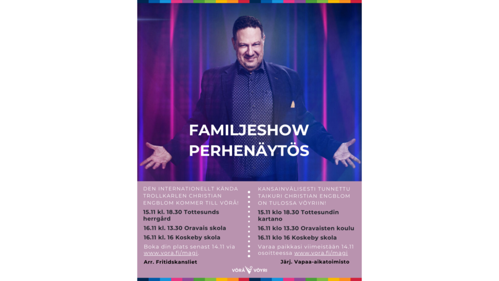 Vöyrin kunta kutsuu sinut ja perheesi kokemaan taianomaisen illan taikurin Christian Engblomin kanssa – mahdoton muuttuu mahdolliseksi, kun Christian Engblom astuu lavalle!