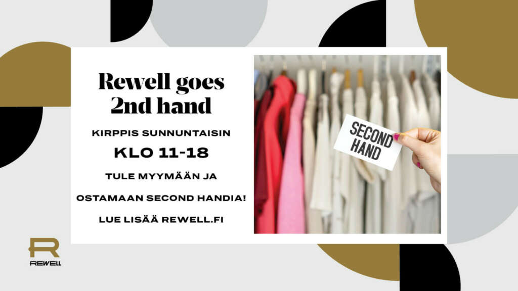 Rewell goes 2nd hand -kirpputoritapahtuma Rewellissä sunnuntaisin. Tervetuloa myymään ja ostamaan second handia!
