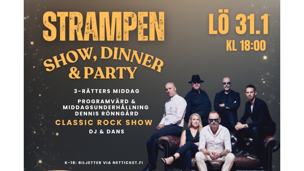Ohjelman juontaja Dennis Rönngård viihdyttää illallisen aikana, ja shown jälkeen jatkamme DJ:n ja tanssin merkeissä.