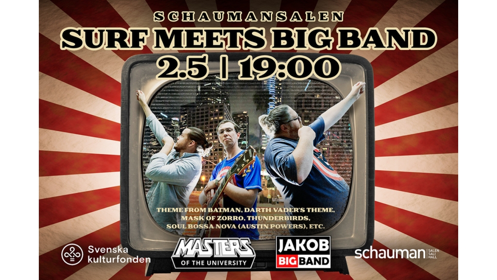 “Surf Meets Big Band” den 2.5 kl 19.00 i Schaumansalen är ett unikt samarbetsprojekt mellan Masters Of The University och Jakob Big Band – två starka musikaliska krafter i Jakobstad som möts i ett djärvt och lekfullt crossover-koncept.