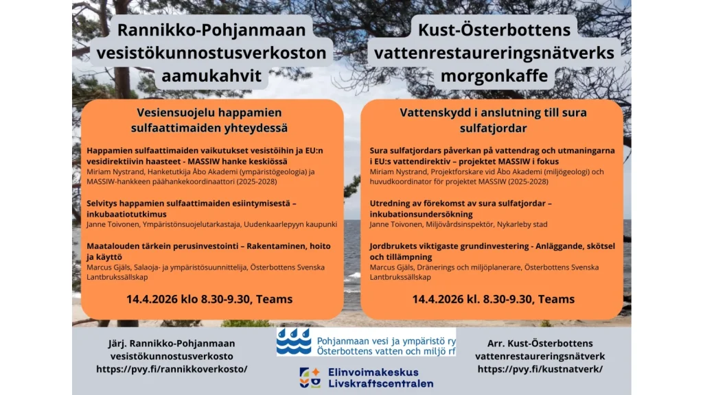 Tervetuloa osallistumaan Rannikko-Pohjanmaan vesistökunnostusverkoston aamukahviwebinaareihin keväällä 2026.