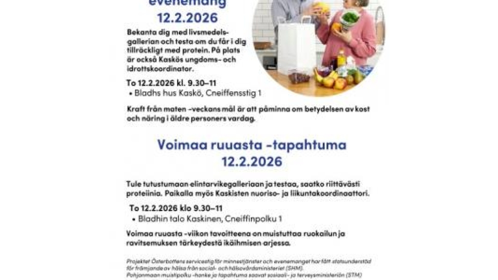 riittävästi proteiinia. Tule tapaamaan Pohjanmaan hyvinvointialueen