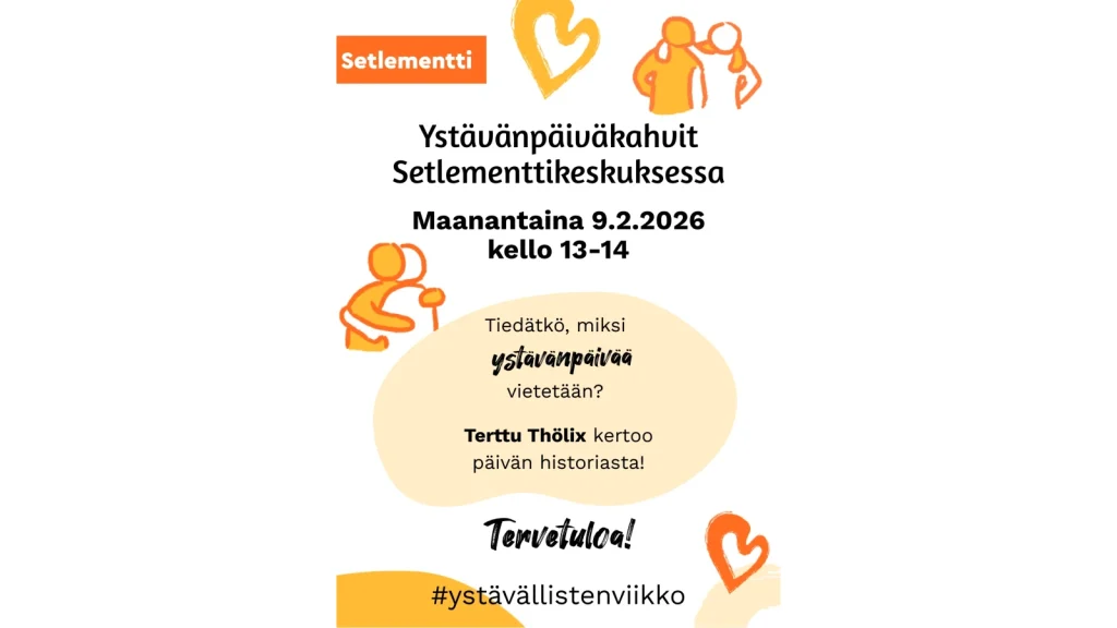 Terttu Thölix kertoo ystävänpäivän historiasta ja Vaasan Setlementtiyhdistys tarjoaa kahvit.
